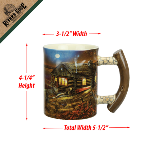 This rainbow trout scene 3D ceramic mug by River's Edge Products is ideal for any outdoor enthusiast. Drink your morning coffee, tea, hot chocolate, or other beverage out of this highly detailed mug. It features a three-dimensional design of a rainbow trout leaping out of the water that wraps completely around the mug. Its impressive artwork extends to the hand painted handle sculpted to resemble a shiny brass fish hook. Due to the metallic finish on the handle, do not microwave. Hand washing this mug is recommended to help keep the design looking its best. This mug will make a great gift for your outdoors-loving friends, family members, or colleagues. The rainbow trout scene 3D ceramic mug combines function with flair so you can enjoy the beauty of wildlife whenever you take a coffee break.