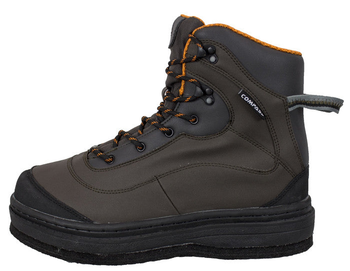 The Tailwater II™ wading shoe with LSG™ (Locking Stud Grip) is the newest style of functional and durable wading shoes from Compass 360®. Constructed with nylon and PU upper. Forget losing your studs with the LSG™ outsole. Your steel wading studs will stay in place mile after mile. Designed to be worn with neoprene booties and with or without wading studs. Featuring reinforced toe and heel cap, locking lace hooks, padded collar, XL web heel pull, and LSG™ outsole.